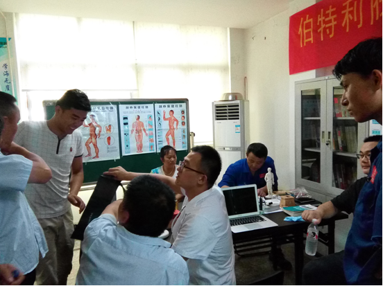 为关爱员工身心健康,7月4日至9日,由公司关工委组织的“关爱员工健康”义诊活动在公司食堂教室举行,邀请到健康管理咨询医师邱猛到公司进行为期一周的中医理疗实践志愿服务。义诊活动包括免费体检、推拿、拔罐、针炙、理疗、健康咨询、等系列服务。